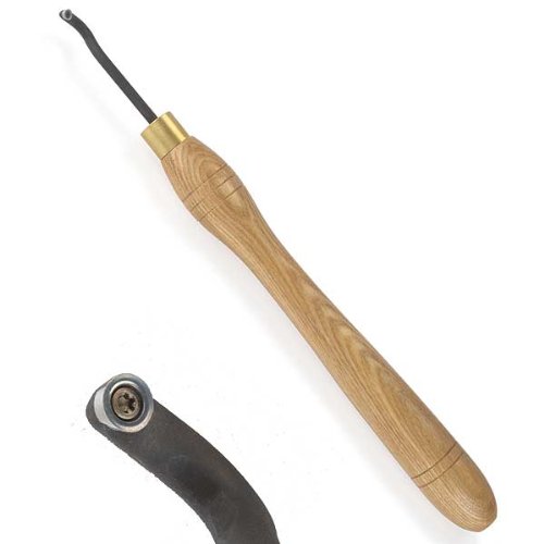 Tired of tough bowl blanks that quickly dull your edges? Have you hesitated to start on a burl because you know what the dirt in it will do to your tools? The Hunter Hollowing Tools, with their unique carbide cutters, are the solution to your problems. They will cut just about everything that you throw at them. Easy to control and smooth cutting. Great for beginners and welcome additions for advanced turners. When the tip dulls, just loosen and rotate slightly to a new razor sharp section. The tip is easy to replace when it eventually wears out. No grinding or lapping of the cutter is needed. High quality carbide tip provides an edge life 25-30 times longer than similar tools. Aluminum oxide finish on the tool holders prevents rust. Strong metal shanks minimize vibration and chatter. Tip wrench and instructions included. If you turn small hollow forms or want to, this is the tool youve been waiting for! The new Hunter #1 Cup Hook Hollowing Tool features a 1/4" shank and is designed to reach into the small openings of hollow forms like Christmas tree ornaments to help you thin out those areas which are just about impossible to reach with existing tools.